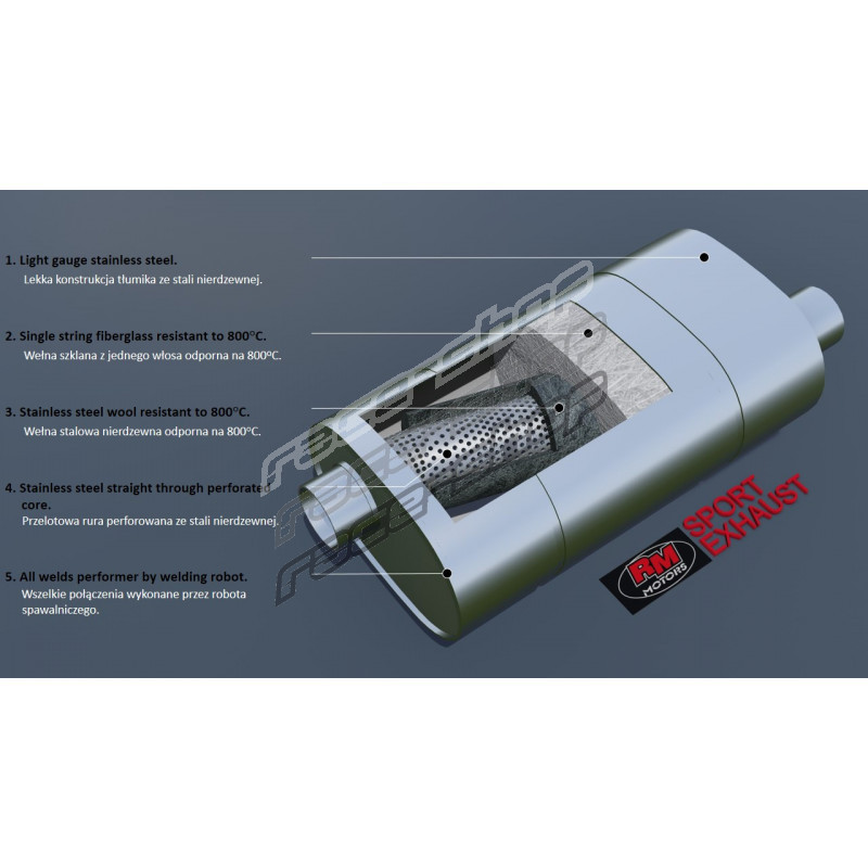 Sredinski izpušni lonec (dušilec zvoka) 63mm RM Motors