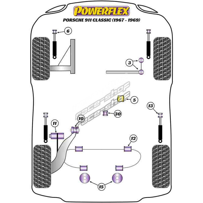 Powerflex Rear Anti Roll Bar Bush 16mm Porsche 911 Classic (1967 - 1969)