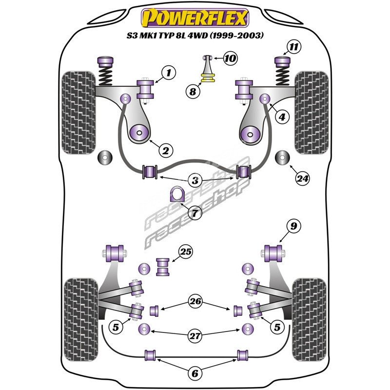 Powerflex Front Wishbone Front Bush 30mm Audi A3 Mk1 Typ 8L 2WD (1996-2003)