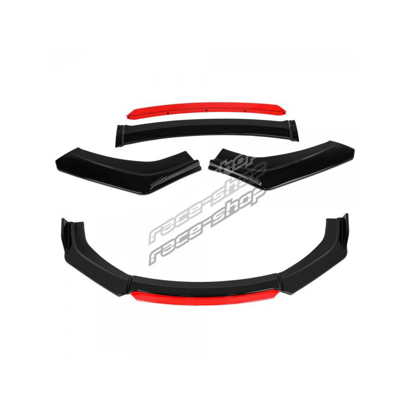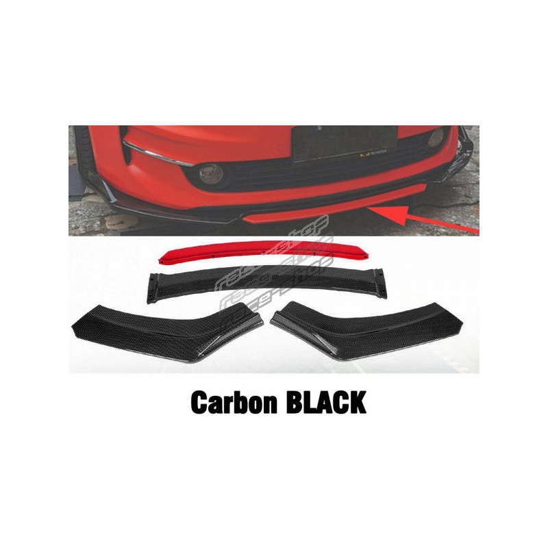 RACES Univerzalni Sprednji lip spojler komplet z rdečim splitterjem (stranskim podaljškom) - karbon