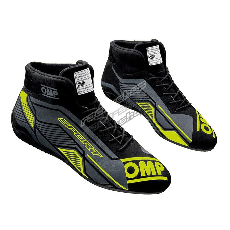 FIA dirkaški čevlji OMP Sport, črna/fluorescenčno rumena