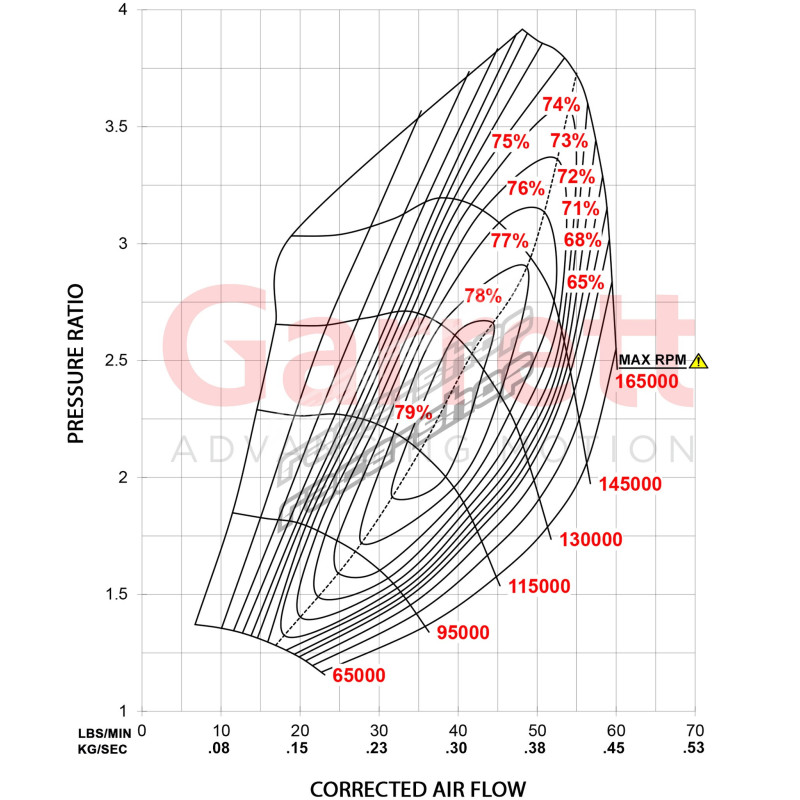 WARNING: Dear customer - G series turbochargers are highly efficient units that don't require a high boost for reaching its limits. Please pay attention that maximum allowable turbocharger speed is 165krpm ( G series ) . The use of this product above max turbocharger speed is at the owner’s risk, and can result in damage and premature failure. To protect the turbocharger from overspeed when operating a speed sensor, part numbers 781328-0004 (single speed sensor that should be connected) or GARRETT G-SMART MODULE ( Module | Harness | Flange Speed Sensor G-Series ) must be fitted and monitored during fine and tune as well as with use of the unit. Missing of the sensors or RPM data will void warranty on product.