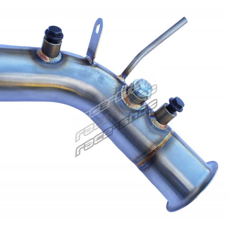 Stainless steel downpipe made by CNC with MIG welding. High quality replacement for OEM downpipe (first part of the exhaust).