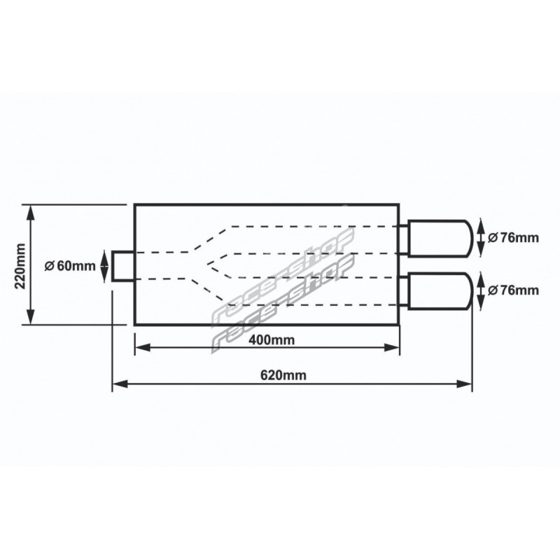 Univerzalni dušilec (izpušni lonec) iz nerjavečega jekla. Dimenzije so napisane na fotografiji.Vprašanje o tem izdelku pošljite lastniku trgovine.