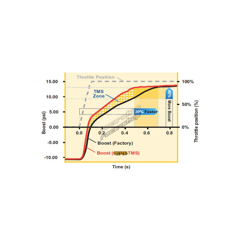 GFB’s TMS (Turbo Management System) principle is based on an operating method that is different to all factory bypass valves, which can be summarised as: