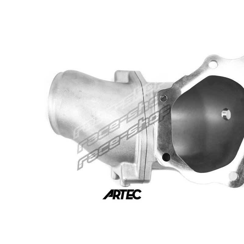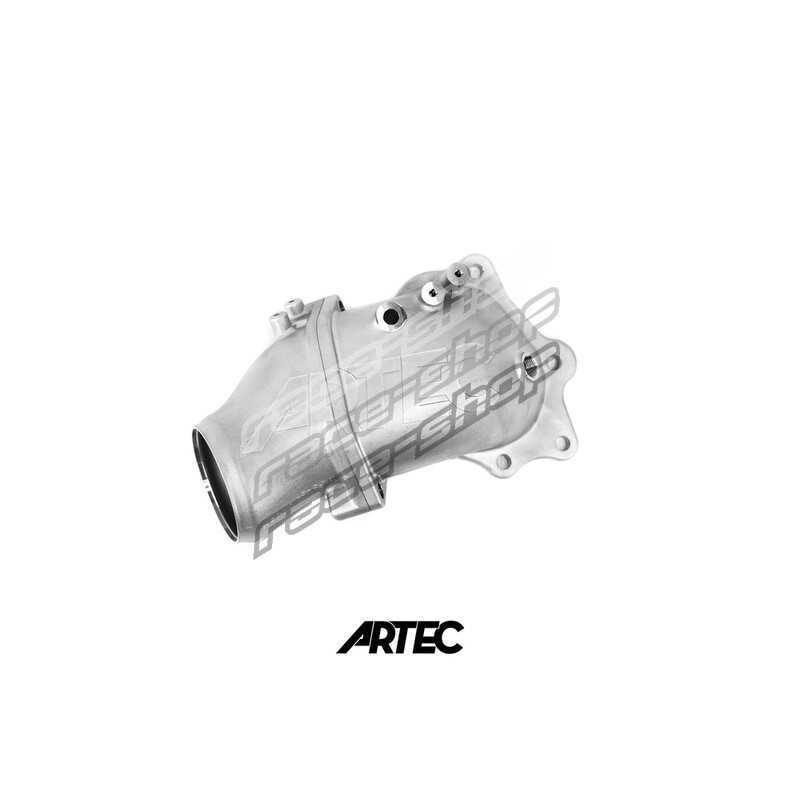 Manufactured by Artec in Australia, this cast stainless steel dump pipe (also known as an outlet pipe or elbow) allows the highest flow of all the products available on the market for Mitsubishi 4B11T engines from Lancer Evolution X (10).