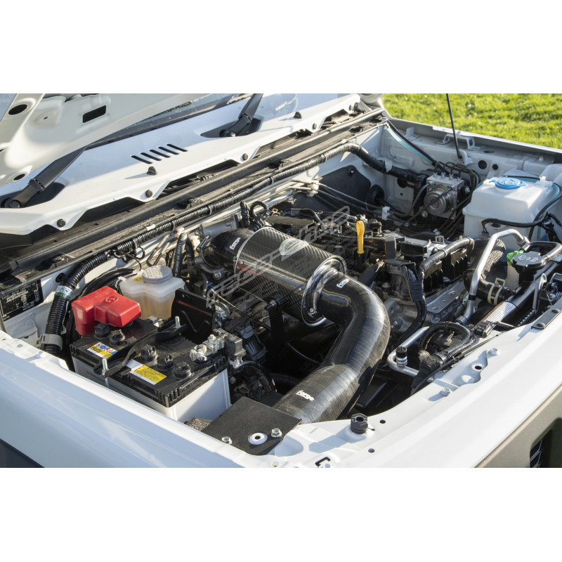 Ta indukcijski komplet za Jimny je bil zasnovan z mislijo na hladen zrak, karbonska posoda ščiti hladen zrak, ki se dovaja v dovodni trakt prek kanala, izdelanega pri Forge, ki je nameščen tik za žarometom. Ta komplet zagotavlja, da so temperature v dovodu motorja minimalne, kar pripomore k najboljši zmogljivosti in dolgi življenjski dobi motorja. Hrup se izboljša tudi v celotnem območju vrtljajev skupaj z nizkim navorom in visoko konjsko močjo v celotnem območju vrtljajev. Iz estetskega vidika komplet Forge res doda vizualni učinek na vaš motorni prostor skupaj z izboljšanjem moči; to je res obvezen pripomoček za vsakega navdušenca Suzuki.