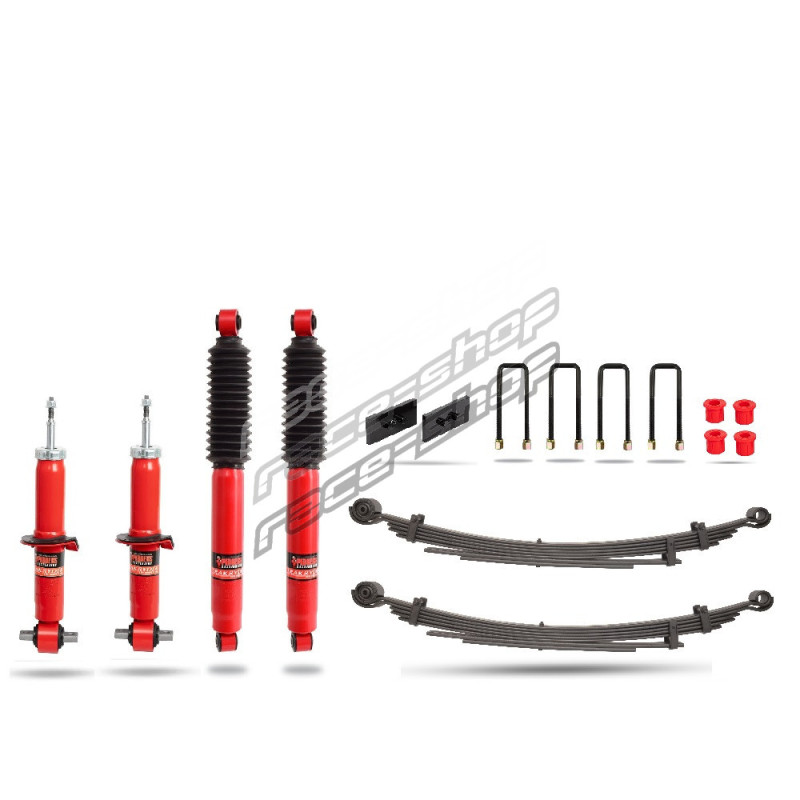 Ideal for work vehicles or recreational setups frequently transitioning between light and heavy loads, the kit includes Pedders TrakRyder Foam Cell shocks, heavy-duty rear leaf springs, high-grade mounting hardware, and manually adjustable airbags. This configuration offers precise control over rear ride height under varying load conditions without introducing excessive stiffness during unloaded operation.