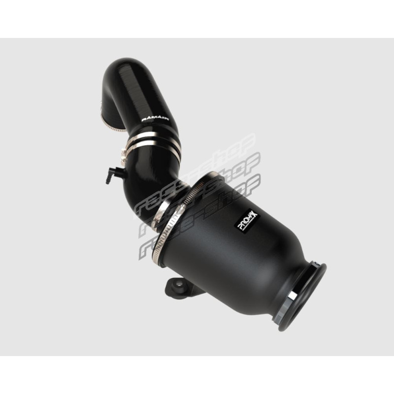 The ProMax enclosed filter has a modular design. Supplied with a bell mouth inlet and base adapter the housing can be combined with a foam Ramair or a pleated Proram filter. The aluminium enclosure shields against engine temps whilst the bell mouth is positioned for an increased cold air feed resulting in an added performance boost.