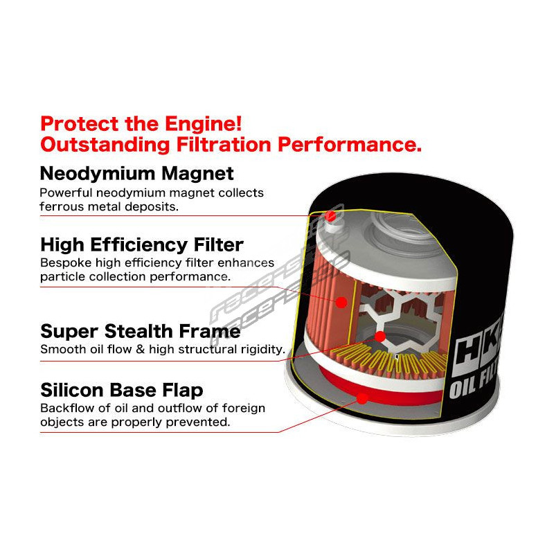 Ti oljni filtri, razviti v podjetju HKS, imajo v mislih le eno stvar: zmogljivost. V primerjavi z originalnimi filtri zagotavljajo do 30 % večji pretok in omejujejo padec tlaka olja. Mazanje motorja je izboljšano, hkrati pa ohranja izjemne filtracijske lastnosti: to je preprosto najboljši oljni filter, ki je na voljo za športne avtomobile.