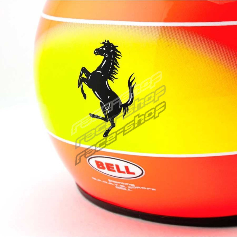 The red-orange iconic Schumi helmet, in which he won his 3rd world title on the Suzuka circuit. Schumacher won against Mika Häkkinen from McLaren Mercedes after a seasonal duel at the penultimate VC year. Ferrari has been waiting for the drivers title since 1979, when Jody Scheckter won.