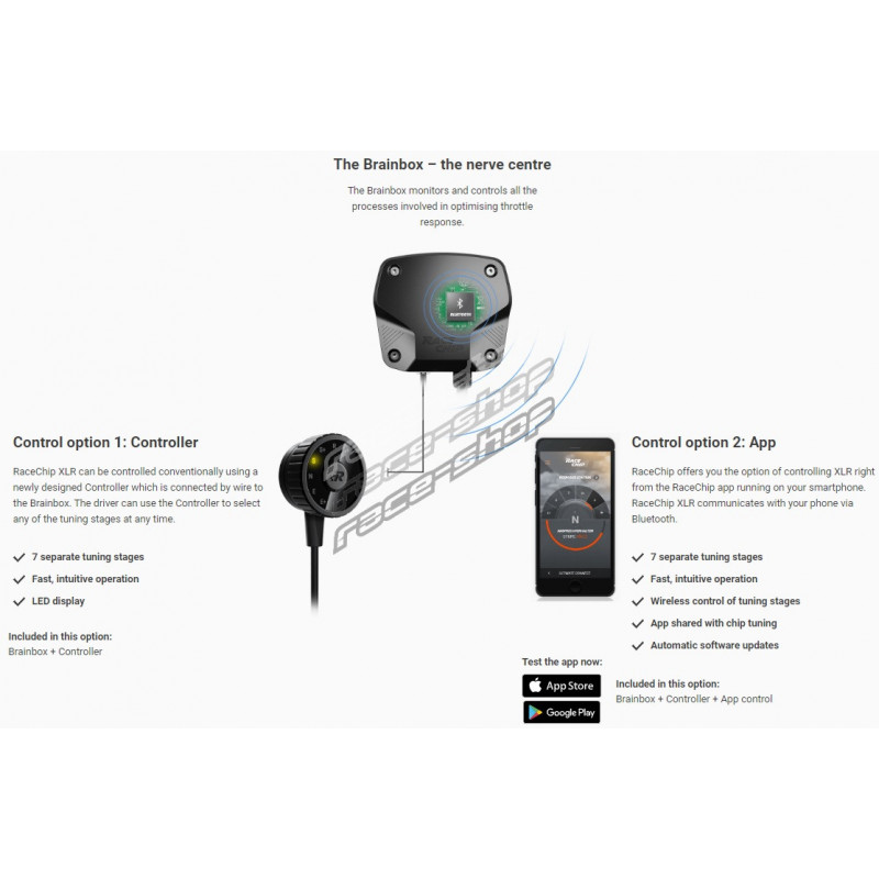 Since 1994 RaceChip® is an automotive software modification company with add-on units . These additional units are installed between the motor and the ECU. The function of this product is to receive and evaluate control unit signals (several thousand times per second), and then modify them to increase and optimize performance. Installation is very simple (within 10-15min.) and without loss of warranty for new vehicles. The company's products do not interfere with the basic system of the car, which keeps all the original functions active. RaceChip® is TÜV certified since 2009.