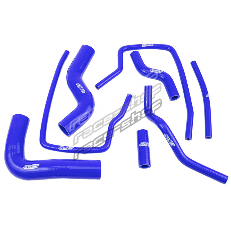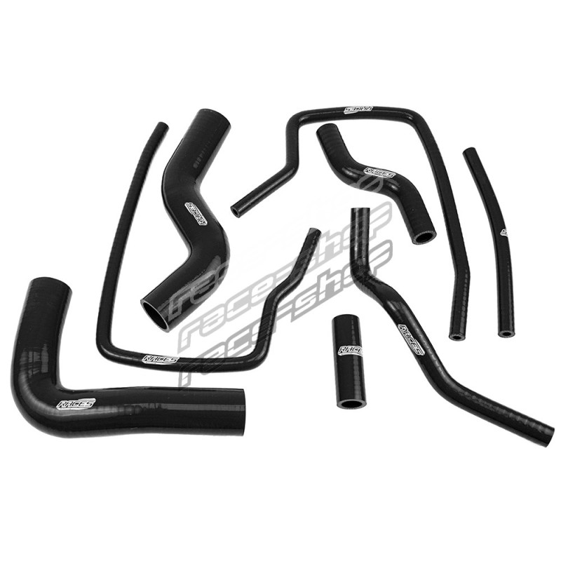 RACES multi-layer reinforced silicone coolant hose kit designed as a direct OEM replacement. Offers superior heat resistance, pressure durability, and long service life compared to factory rubber hoses.