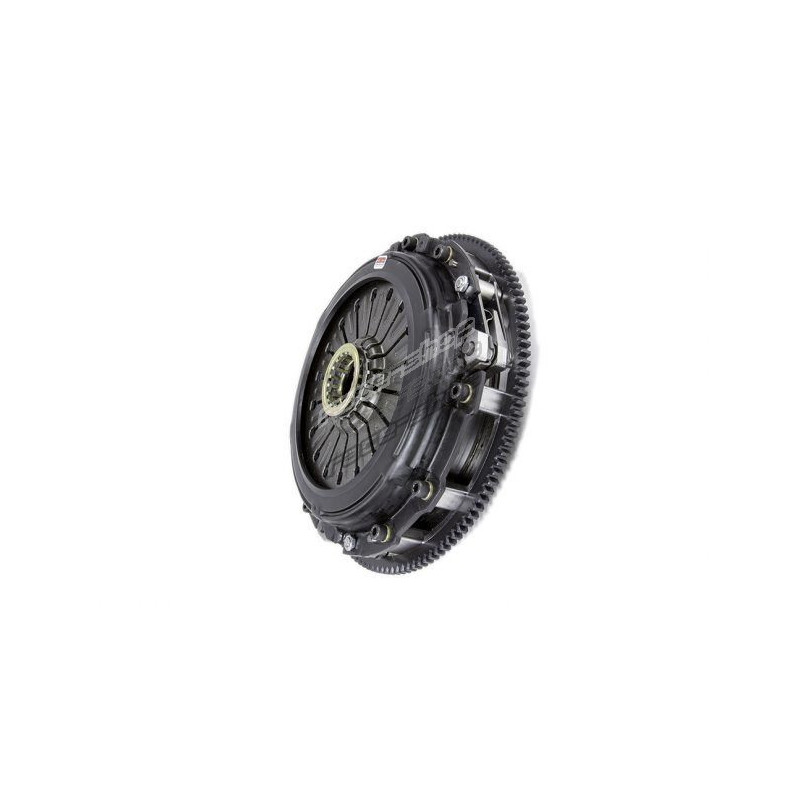 the competition clutch multi-plate clutch kit (mpc) with flywheel provides a drastic increase in horsepower holding capacity with excellent driving characteristics. the twin disc construction is tuned for maximum drivability. the new clutch kit provides the ideal balance of sport driving and daily driving clutch use.many new features are responsible for these positive attributes. twin 240mm full faced discs are used in conjunction with a performance pressure plate, hence are providing additional friction area for enagement. the full faced discs are offered in either full faced organic or segmented ceramic options. the steel flywheel is cnc machined and balanced. all clutch kits are provided with an alignment tool, pilot bushing and throw-out bearing.