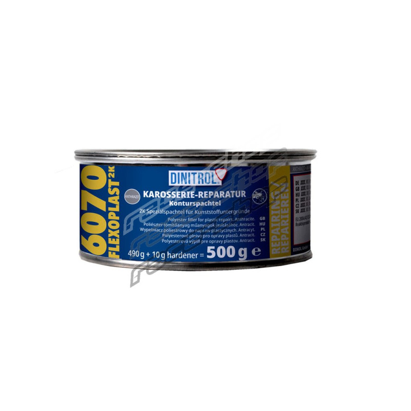Špeciálny dvojzložkový opravárenský tmel pre jemné tmelenie plastov. Vysoká priľnavosť a ľahká brúsiteľnosť. Vhodný na všetky typy plastových dielov (nárazníky, blatníky, diely motoriek,...).