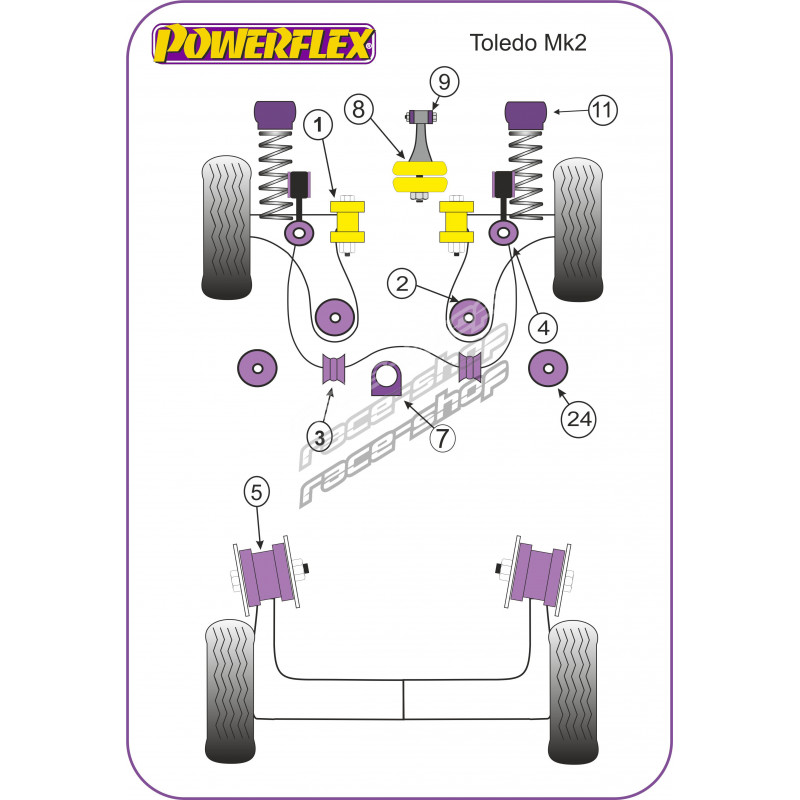 Powerflex Front Strut Top Mount Bush -10mm Seat Toledo Mk2 Typ 1M (1999 - 2004)