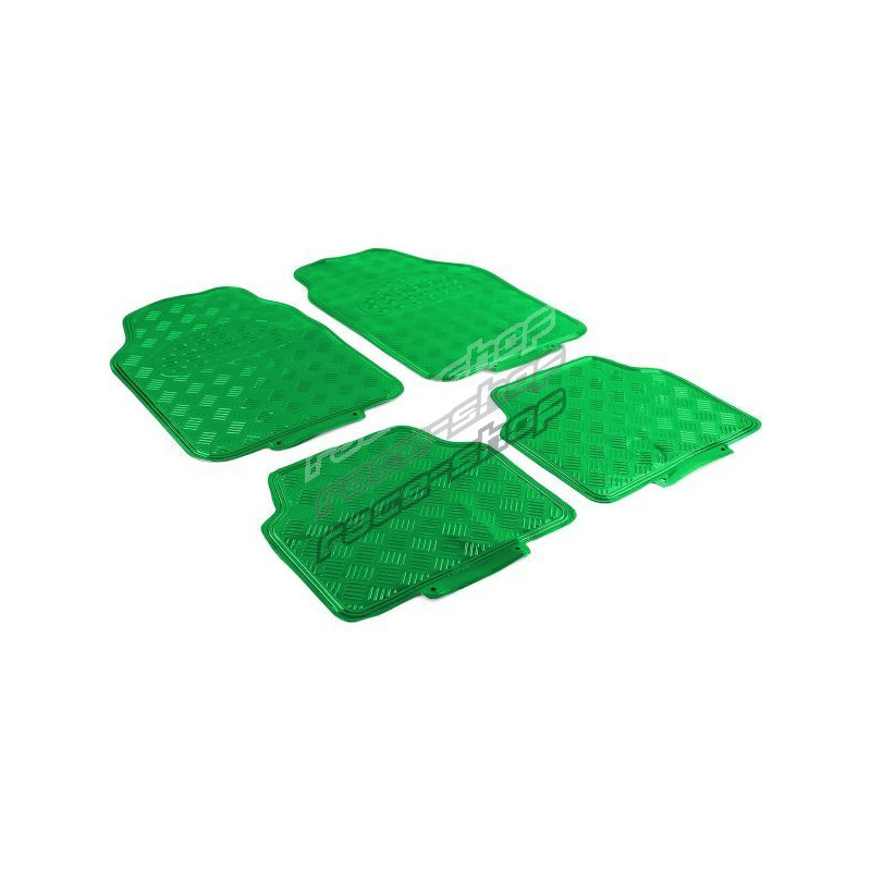 Car rubber floor mats universal aluminum checker plate optics 4-piece chrome green