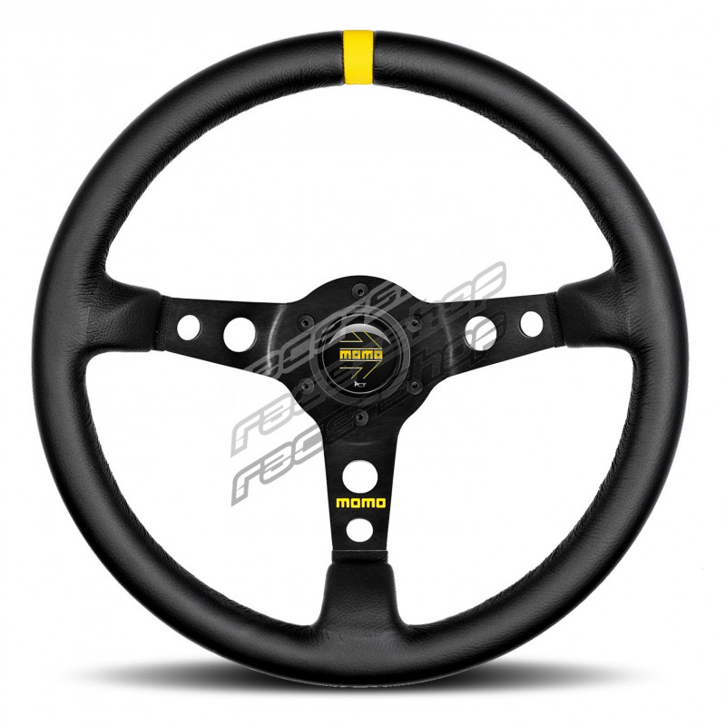 MOMO Mod. 07 z izrezi v krakih zmanjša težo in poveča vozno učinkovitost. 72 mm velika globina omogoča popolno kontrolo nad avtomobilom, črno usnje pa je za večjo trpežnost prilepljeno na obod. Oprijem brez anatomskih elementov zagotavlja nemoten pretok in nadzor vozila.Vprašanje o tem izdelku pošljite lastniku trgovine.