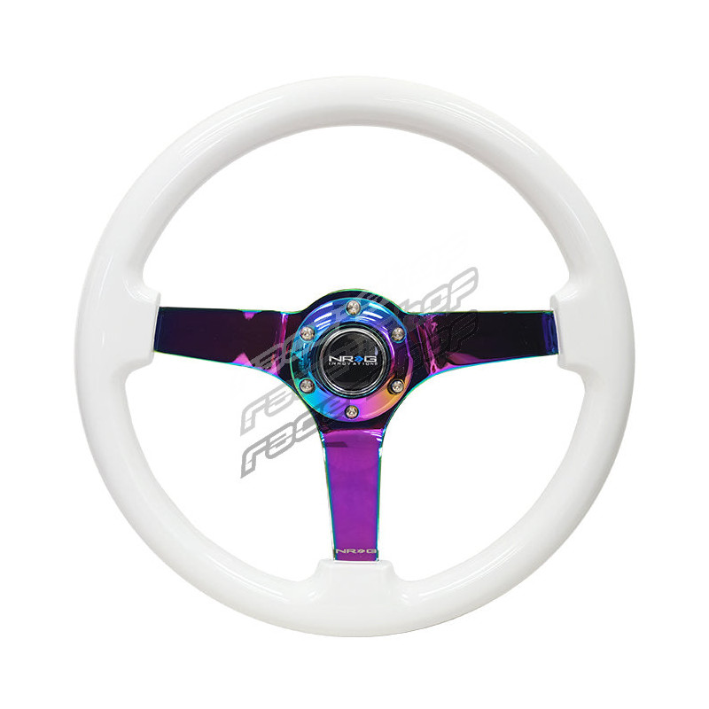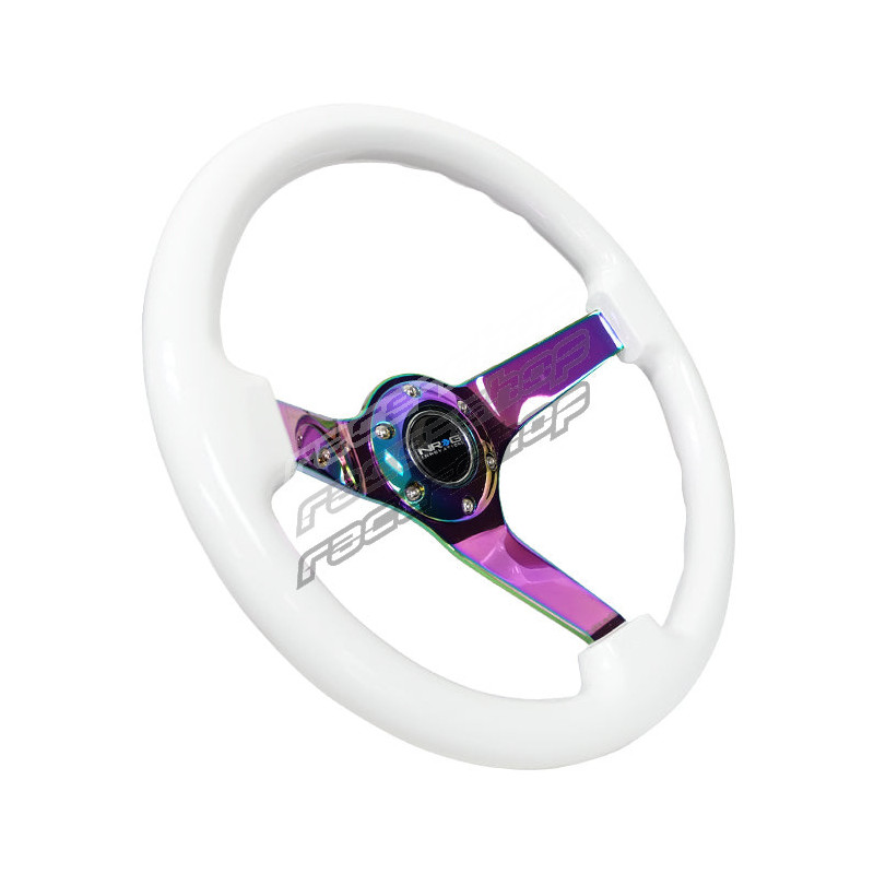 NRG 3-kraki športni volan iz mahagonija (350mm), bela/neokrom
