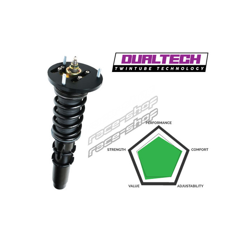The HSD Dualtech coilover suspension is a versatile and budget-friendly upgrade designed for enthusiasts seeking improved handling and aesthetics without compromising daily comfort. It is ideal for street and occasional track use, as it offers a great balance between performance and comfort, making the HSD Dualtech a very popular choice among automotive enthusiasts.
