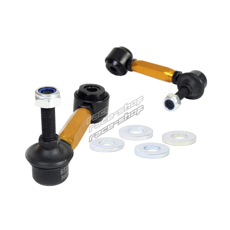 Not many enthusiasts are aware that OEM and more importantly aftermarket sway bar effectiveness can be hindered by worn or inadequate mounts, drop links and lateral stoppers. Whiteline adjustable sway bar links are engineered to be up to the task with top spec, light weight componentry combined with a window of adjustability, eliminating sway bar preload on installation but most importantly ensuring the maximum output of the sway bar for improved grip and better handling.
