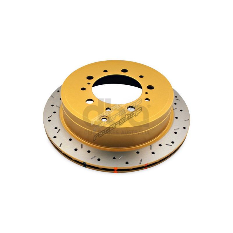 The premium non-directional cross-drilled and slotted design of DBA brake rotors increases the number of outgassing exit points, allowing more brake pad friction gasses to escape.