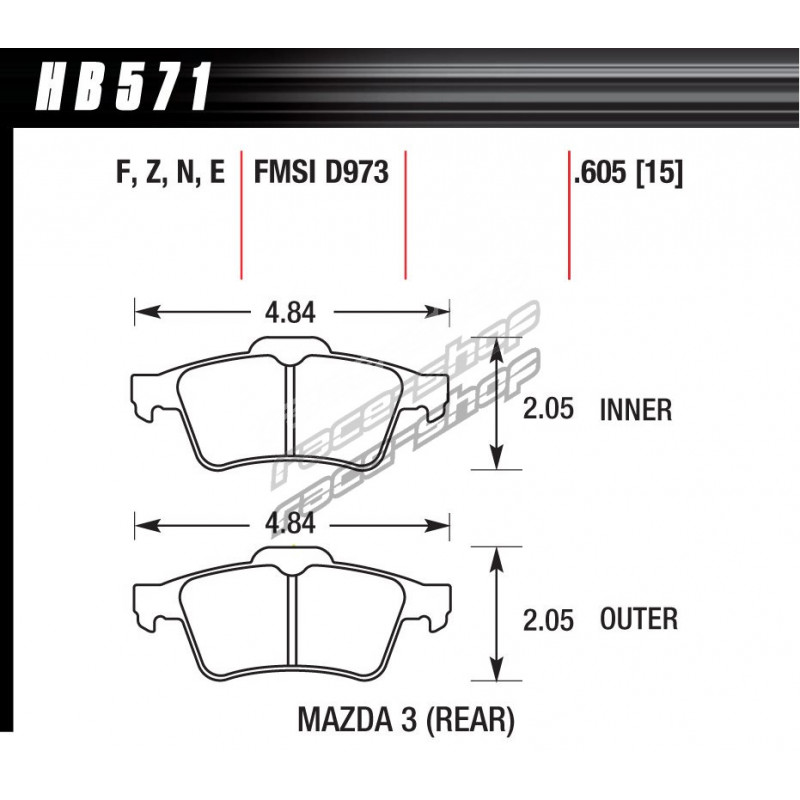Zadnje zavorne ploščice Hawk HB571F.605, Street performance, min-max 37°C-370°C